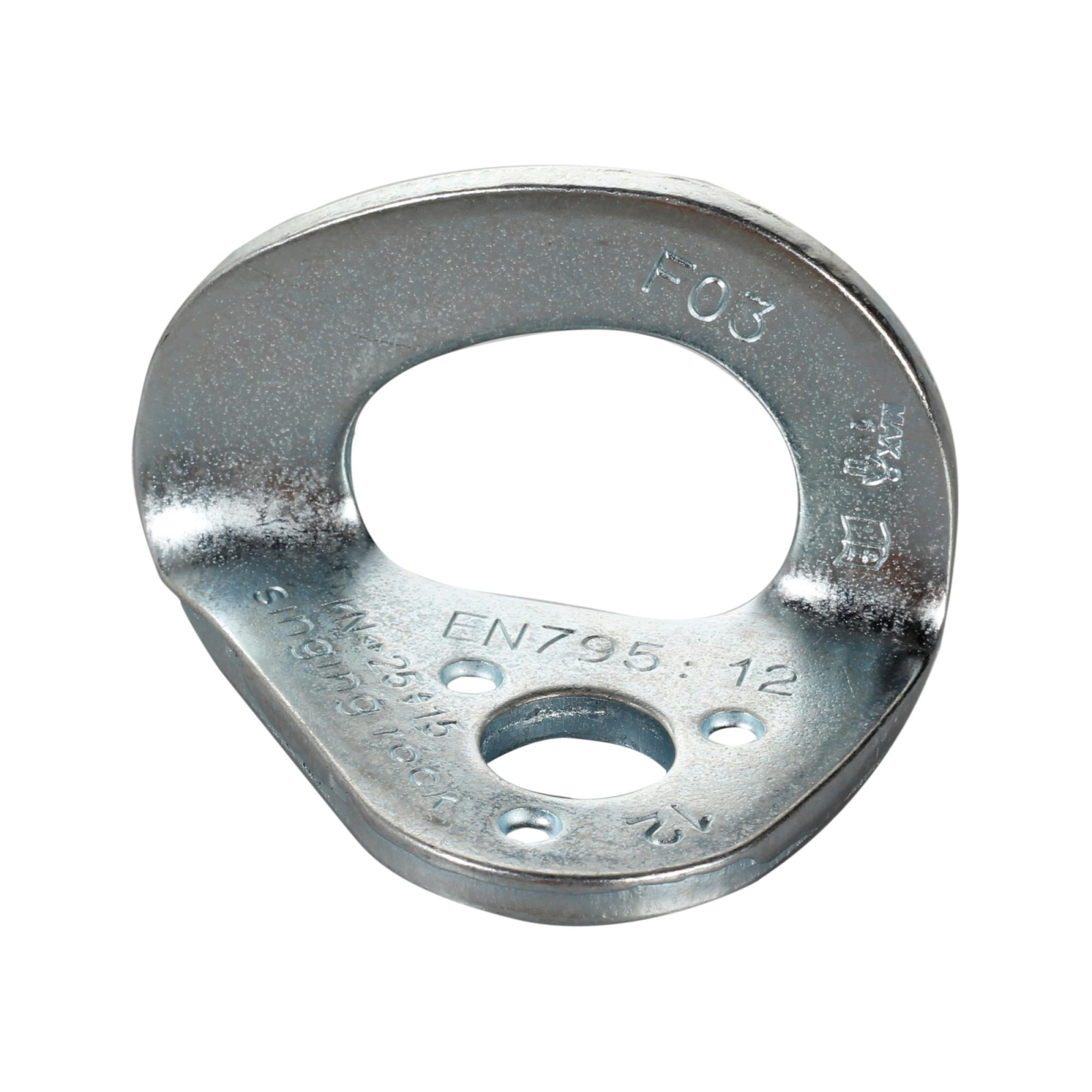 Ancora metalica Singing Rock HANGER PLATE 12mm RK702, ureche de spit, otel zincat, 62g, 25kN, compatibila cu carabiniera OVAL