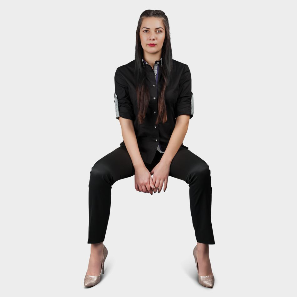 •   Camasa de dama cu maneca lunga. Optiune cu maneca scurta prin inchidere cu nasturi.
