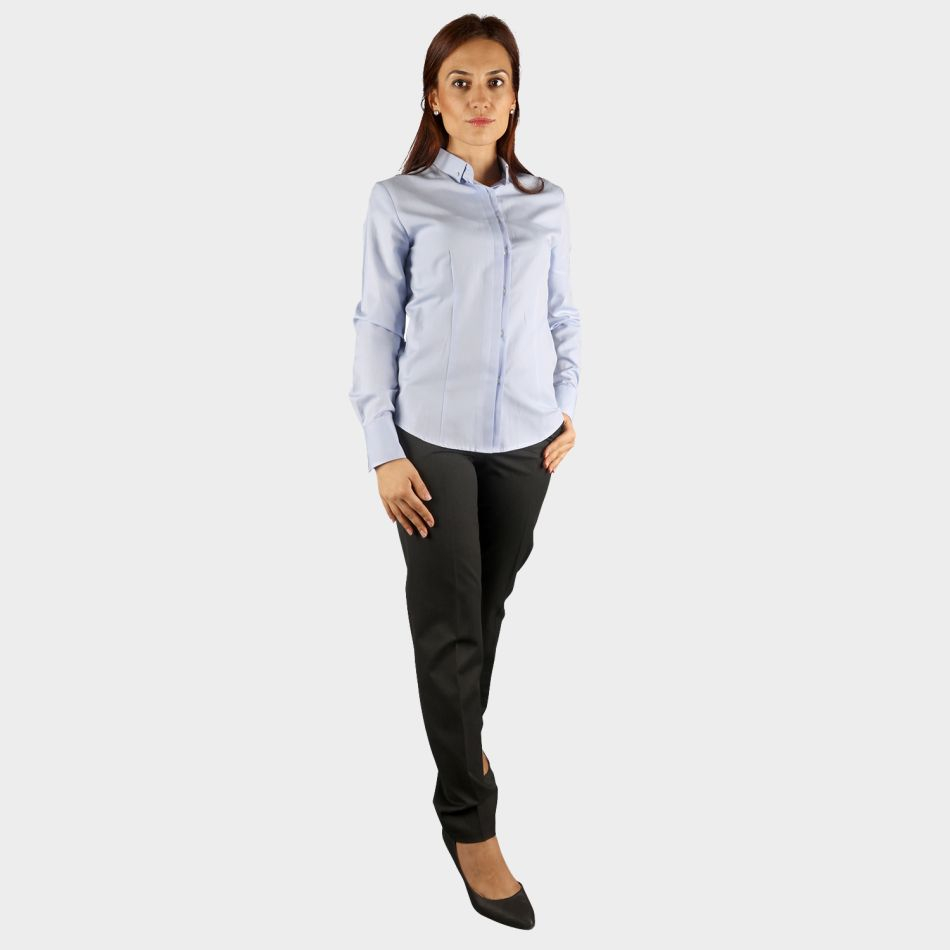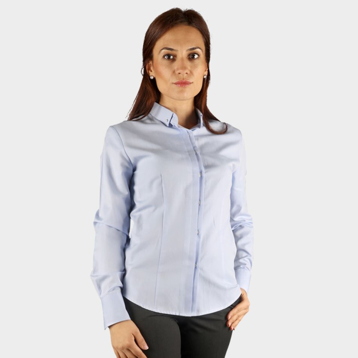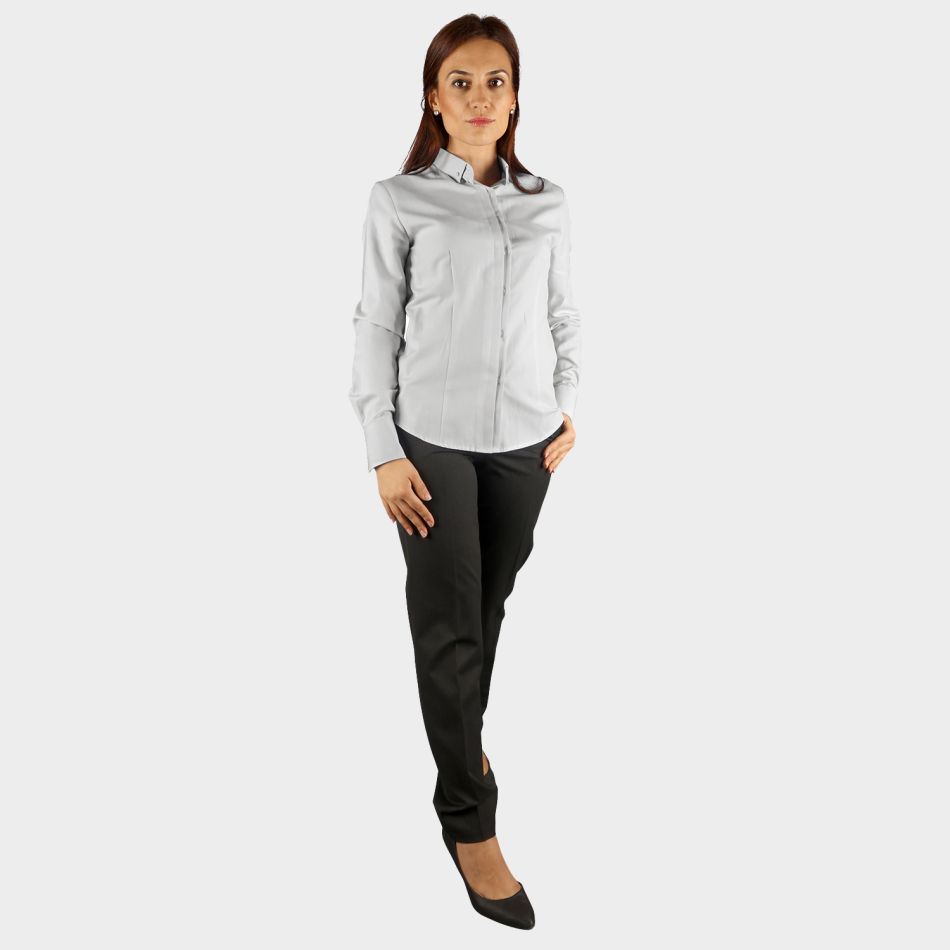 • Camasa de dama, mulata, cu maneci lungi si guler mic in stil italian. Inchidere ascunsa, manseta cu doi nasturi.