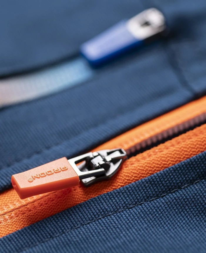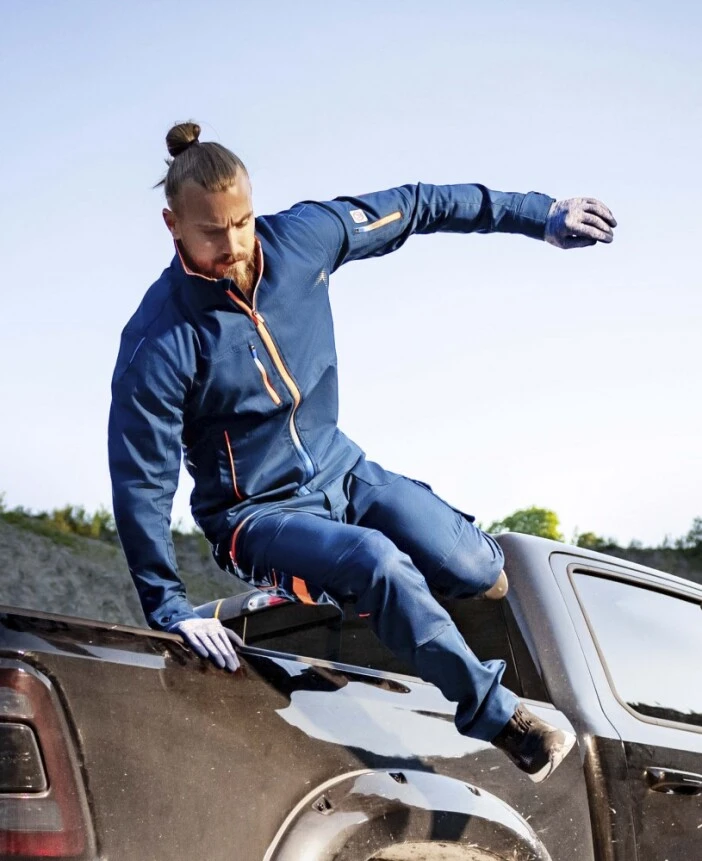 - Materialul Tabiflex® durabil si elastic in patru directii este utilizat pe partile expuse jacheta cu guler ridicat are o croiala 3D SLIM FIT Ergonomica extrem de functionala care accentueaza silueta