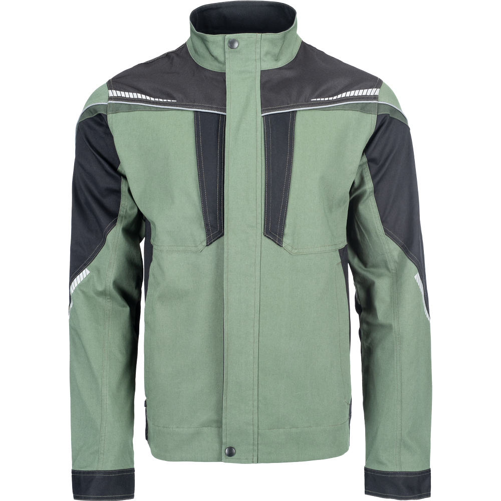 •    Jacheta de lucru cu inchidere cu fermoar, confectionata din material elastic, 2 buzunare laterale, 2 buzunare la piept cu fermoar, intarire a partilor solicitate, bordura reflectorizanta si detalii imprimate.