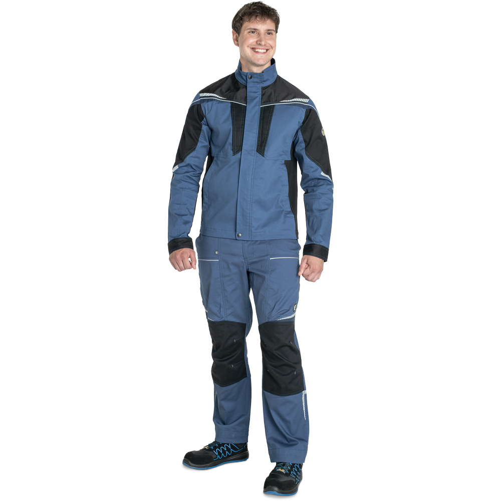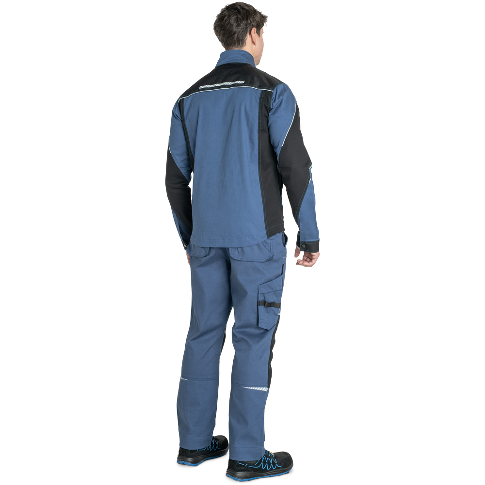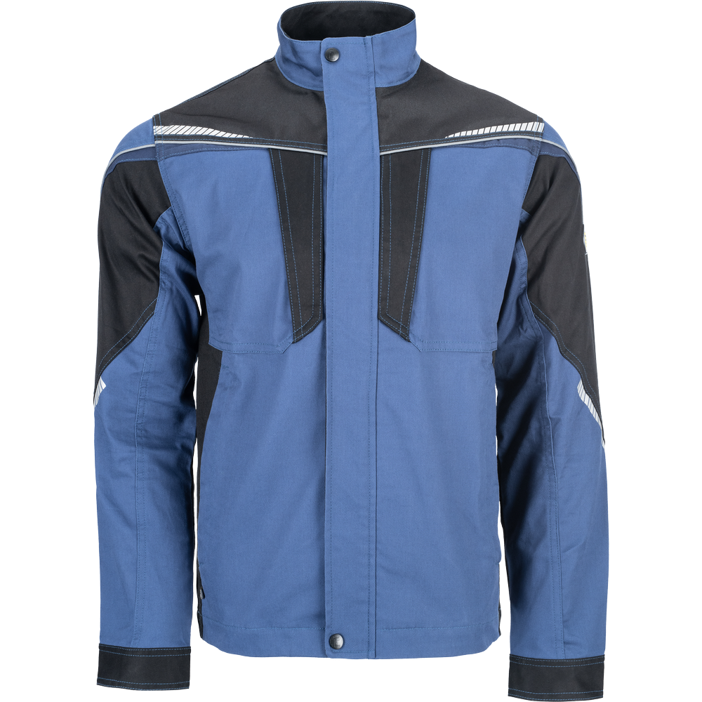 •    Jacheta de lucru cu inchidere cu fermoar, confectionata din material elastic, 2 buzunare laterale, 2 buzunare la piept cu fermoar, intarire a partilor solicitate, bordura reflectorizanta si detalii imprimate.