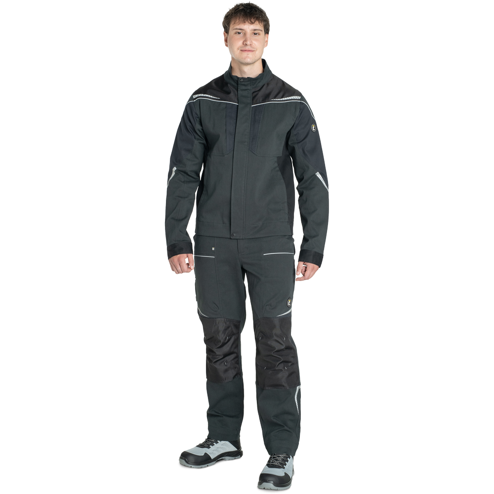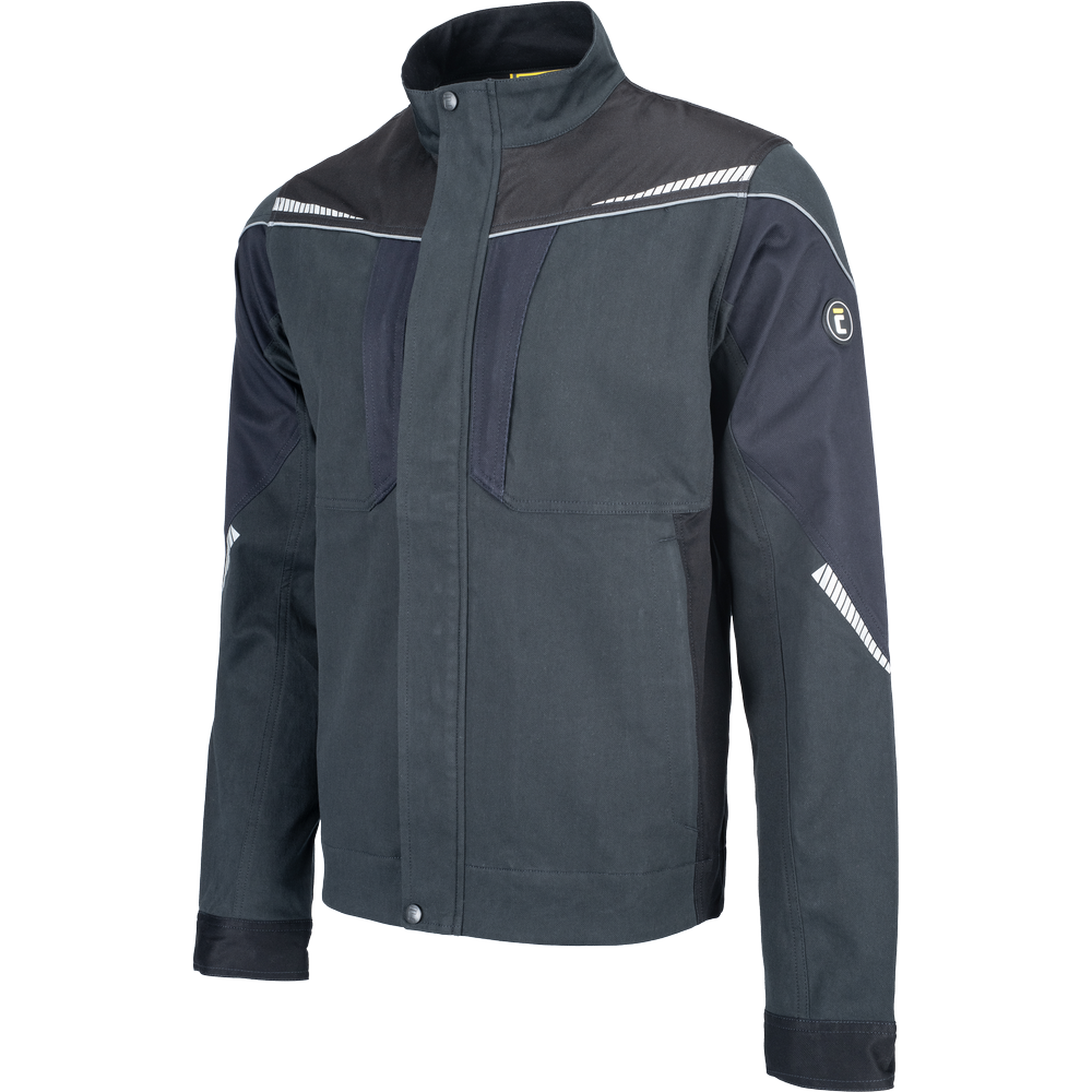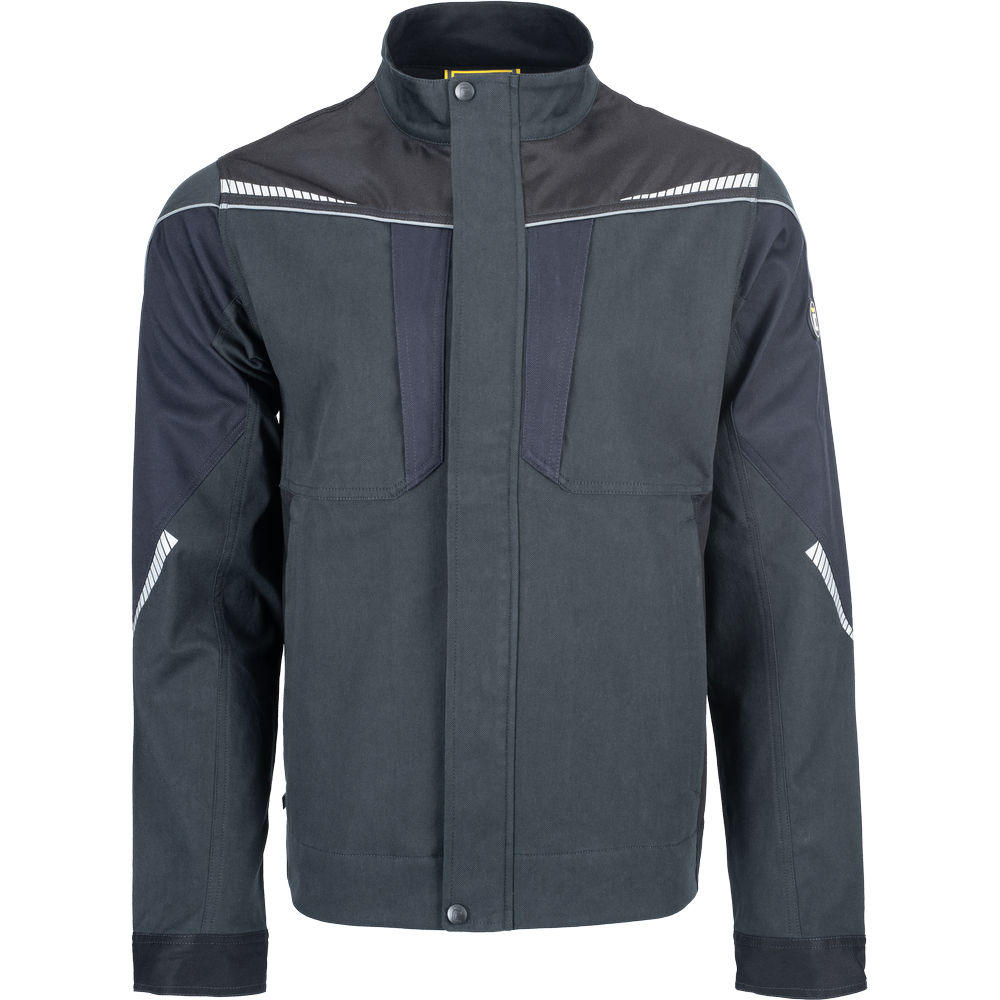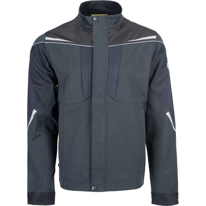 •    Jacheta de lucru cu inchidere cu fermoar, confectionata din material elastic, 2 buzunare laterale, 2 buzunare la piept cu fermoar, intarire a partilor solicitate, bordura reflectorizanta si detalii imprimate.