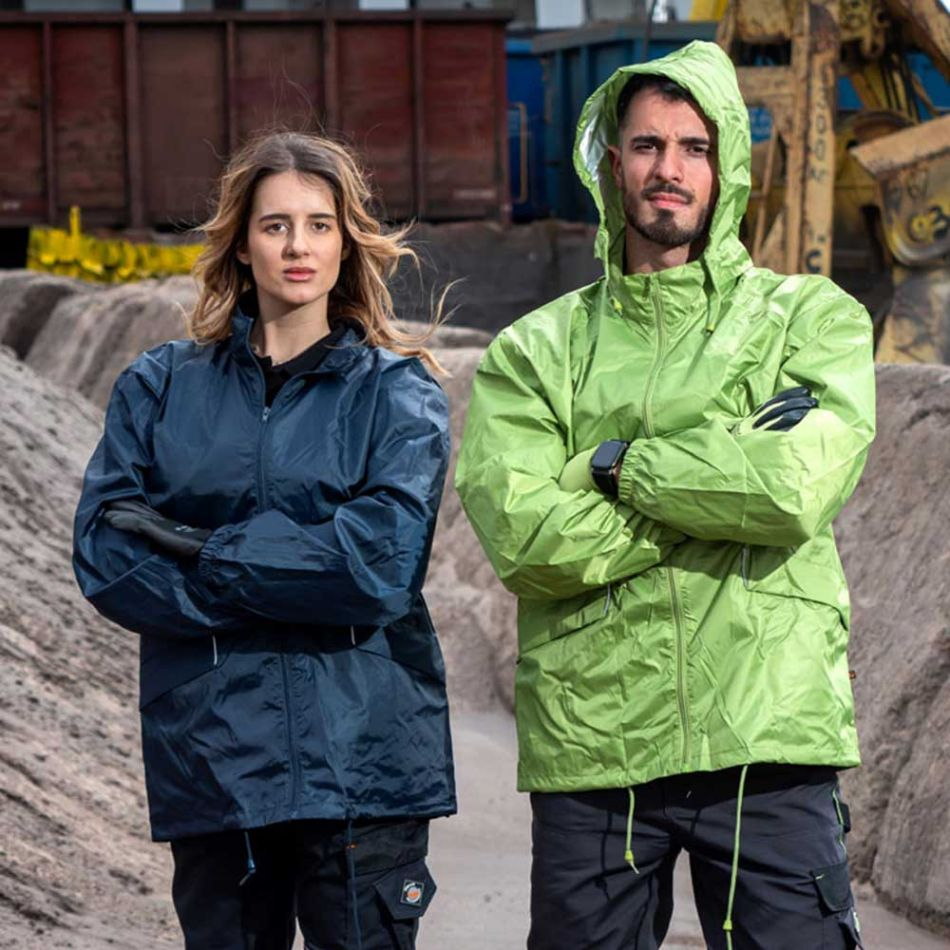 •    Jacheta impermeabila cu gluga si elemente de inalta vizibilitate.