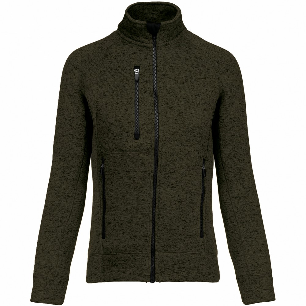 Jacheta de dama pestrita cu fermoar complet, maneci raglan. Doua buzunare contrastante cu fermoar in fata si un buzunar contrast cu fermoar pe piept. Croiala si material foarte confortabil