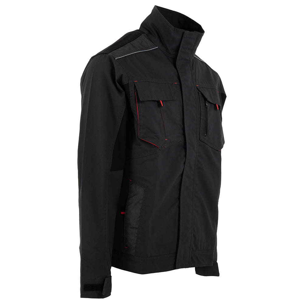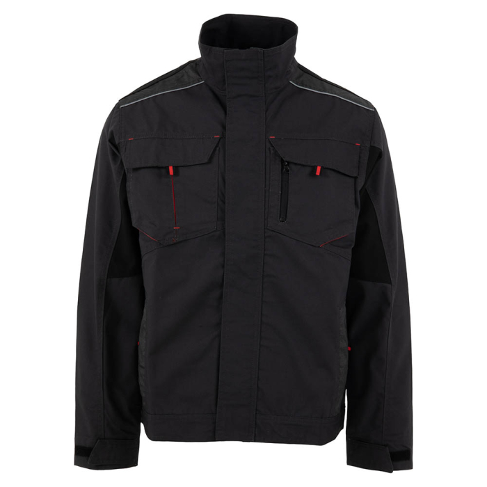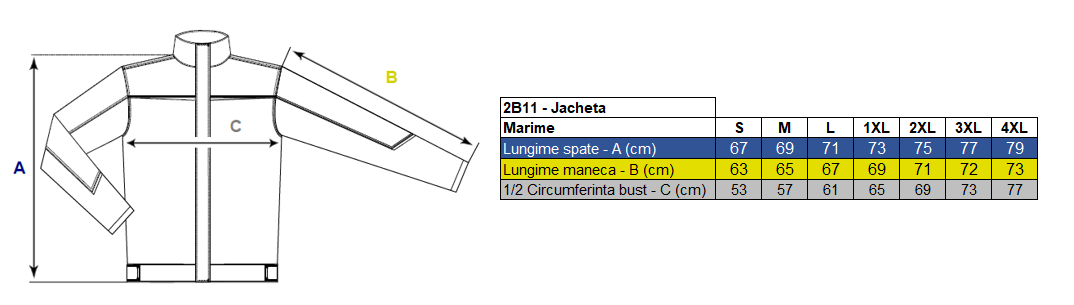 Caracteristici generale: Jacheta de protectie cu buzunare aplicate in partea frontala, sistem de inchidere frontal cu fermoar acoperit cu fenta. Mansete reglabile cu scai.