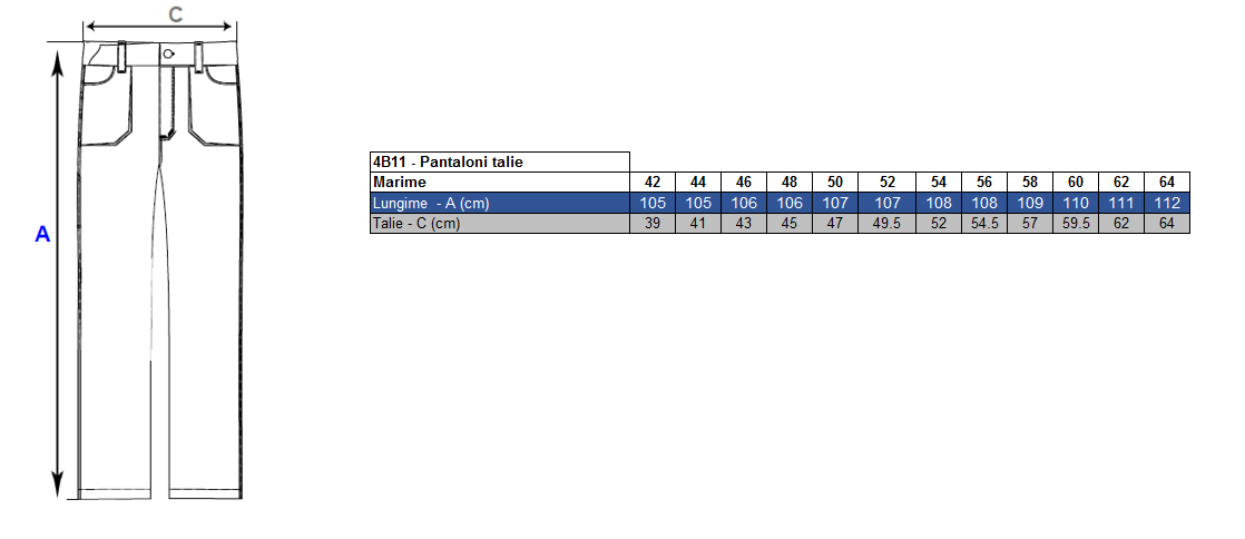 Marcare: Eticheta permanenta a produsului contine : codul, marimea, marcajul CE, dimensiunile corpului operatorului (circumferinta : torace, talie, inaltime), compozitia tesaturii, pictograme reprezentand instructiunile de intretinere,.