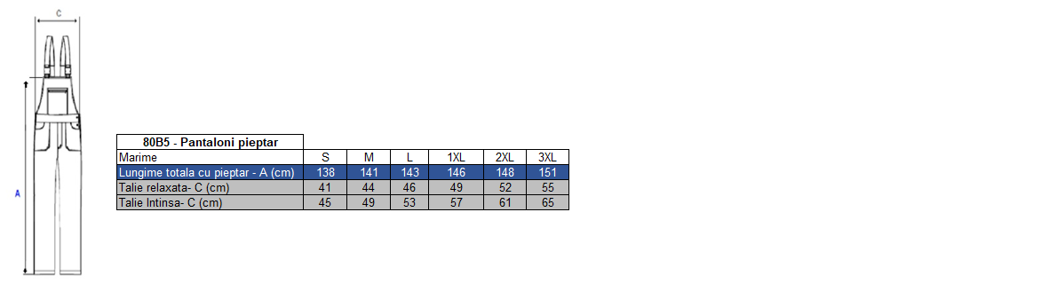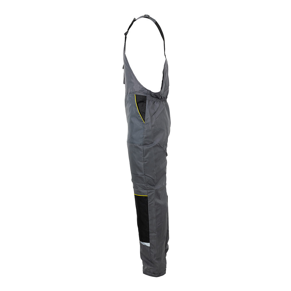 CONSTRUCTIE: Pantalon cu pieptar de iarna cu sistem de inchidere frontal cu fermoar, 2 buzunare aplicate in fata, buzunar la piept pentru telefon care are inchidere cu clapeta si scai, langa un buzunar pentru pix, buzunar la spate inchidere cu scai, un buzunar pe picior pentru unelte. Sistem de ajustare in talie la spate cu elastic. Reglarea la bretele este cu elastic si catarame.