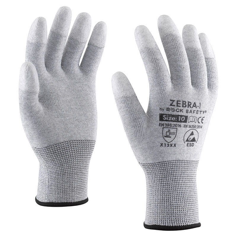 Manusi de protectie antistatice Rock Safety ZEBRA-1 ESD, cu varfurile degetelor imersate in PU