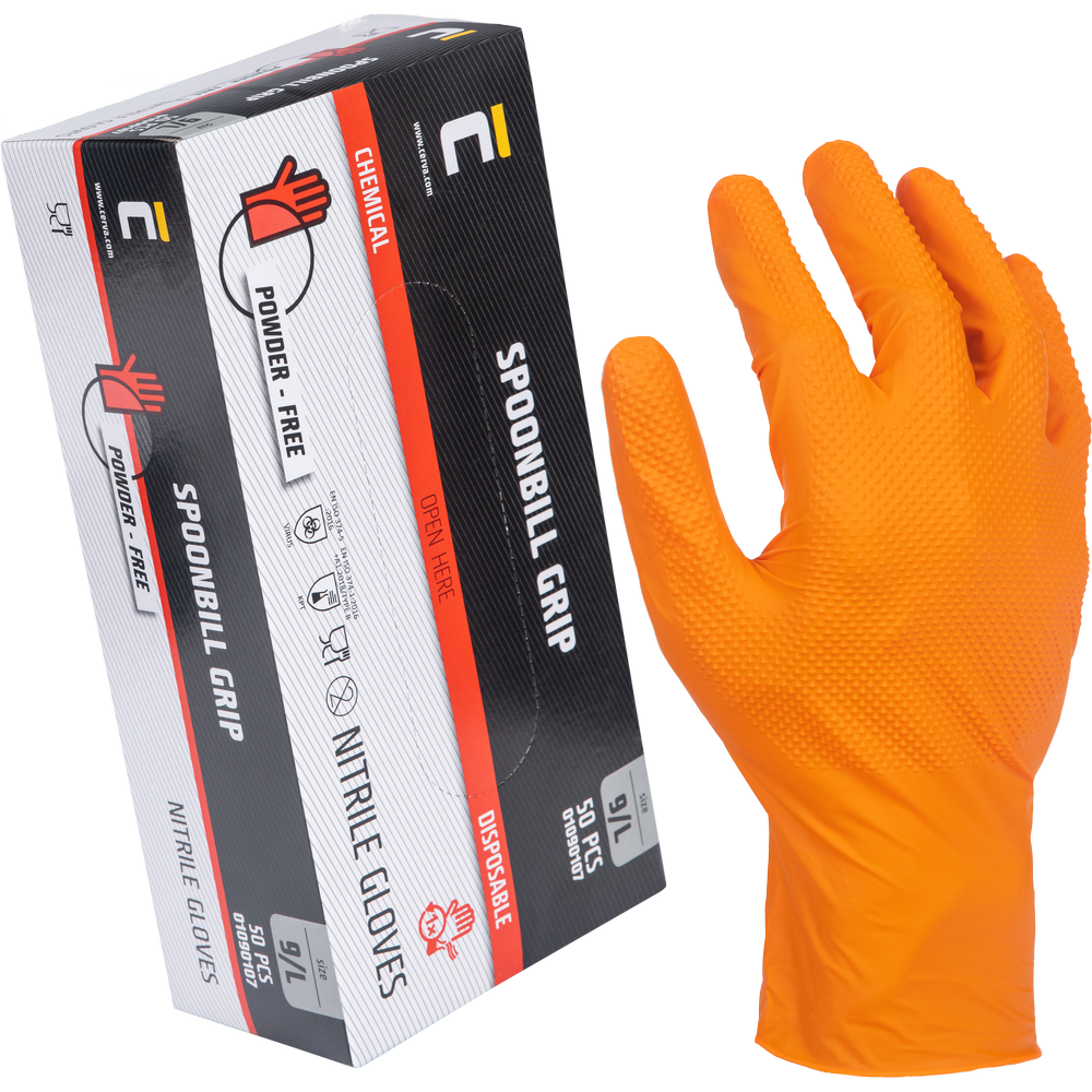 Manusi din nitril nepudrate Cerva SPOONBILL GRIP, de unica folosinta