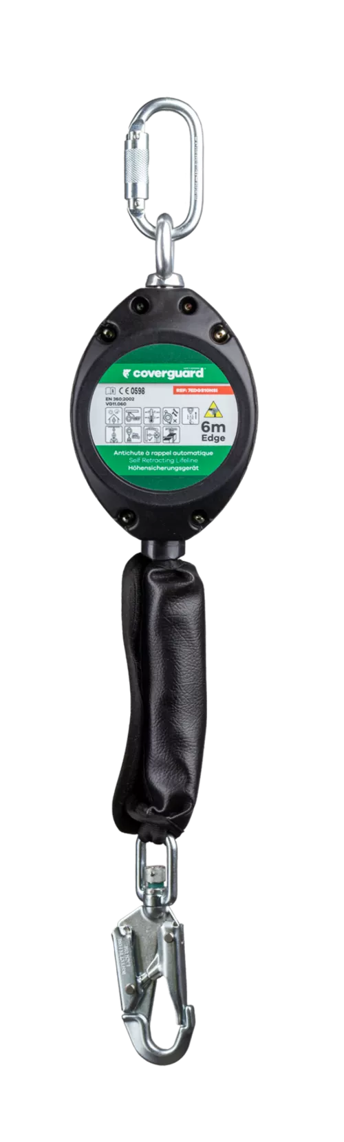 Dispozitivul include o carabimiera automata si un carlig pivotant cu indicator de cadere. Carcasa robusta din polimer este prevazuta cu ochi pivotant pentru libertate de miscare si reduce semnificativ distanta de degajare necesara in cazul unei caderi.