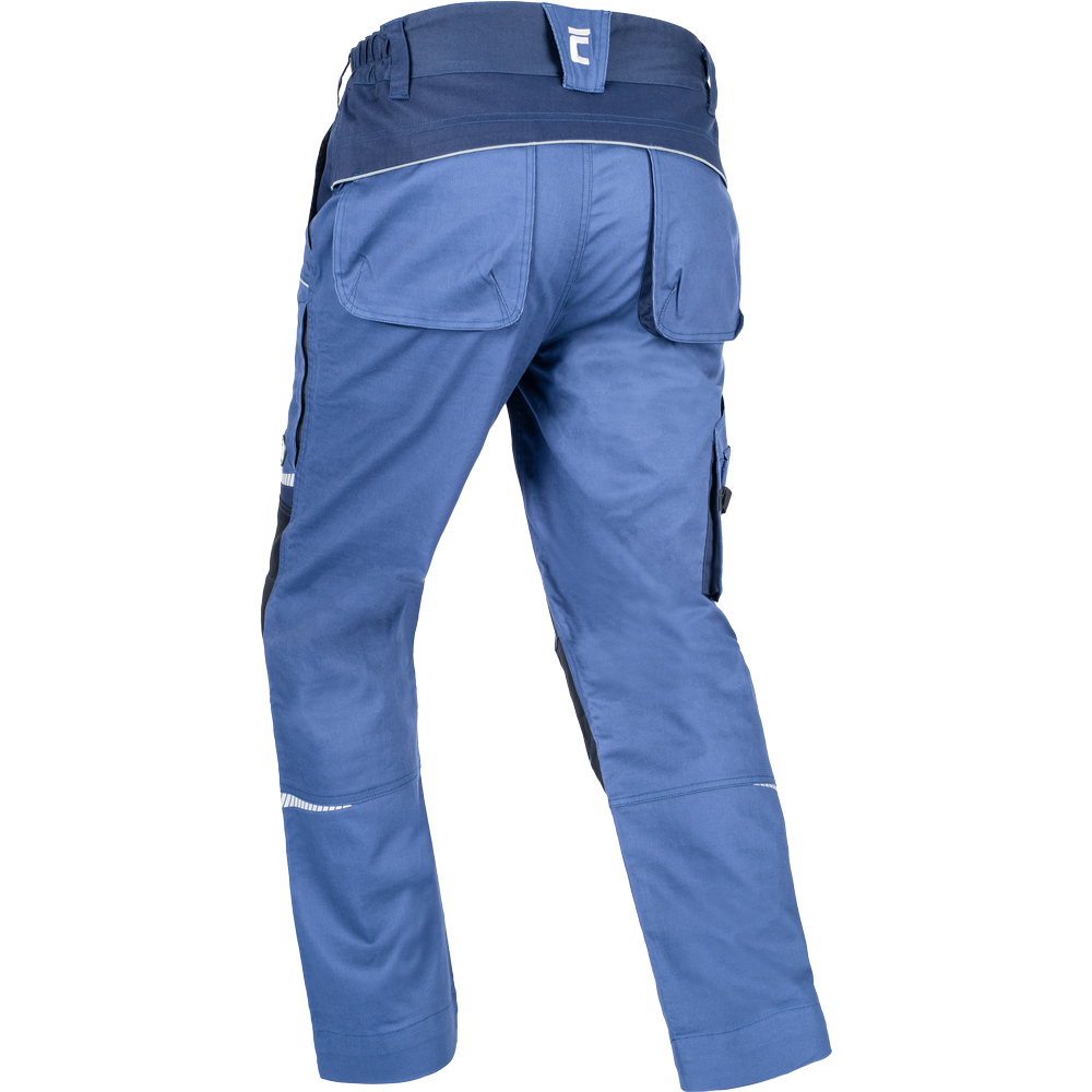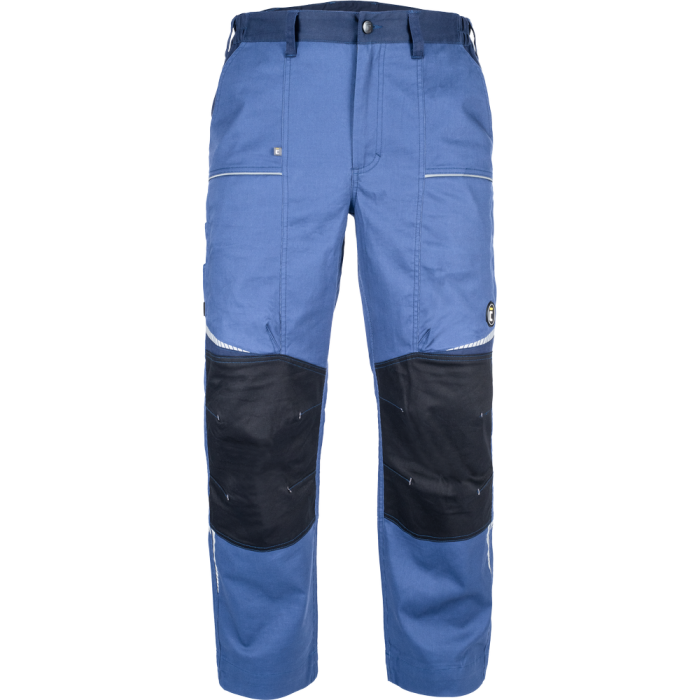 •    Pantaloni de lucru din material usor elastic, cu talie elastica si  gaici pentru curea; 2 buzunare frontale, 2 buzunare spate; 2 buzunare de ventilatie din plasa cu fermoar la nivelul coapselor; 1 buzunar multifunctional pe partea dreapta; zone intarite la genunchi;  element reflectorizant si detalii imprimate; picioare extensibile cu 5 cm.