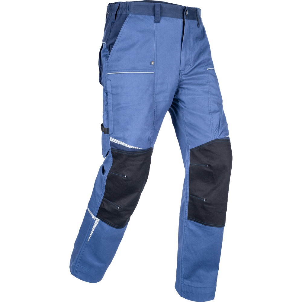 •    Pantaloni de lucru din material elastic, cu talie elastica si gaici pentru curea; 2 buzunare frontale, 2 buzunare spate;  2 buzunare de ventilatie din plasa cu fermoar la nivelul coapselor; 1 buzunar multifunctional pe partea dreapta; genunchiere intarite pentru introducerea genunchierelor; element reflectorizant si detalii imprimate; picioare extensibile cu 5 cm