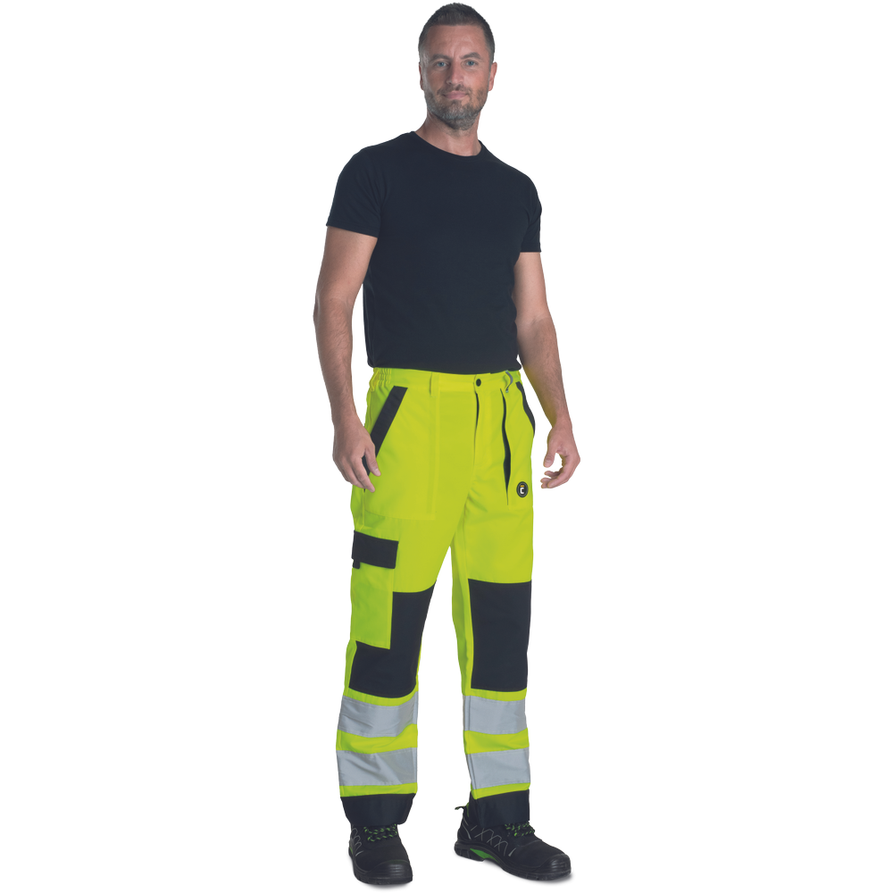 Pantaloni de lucru in talie cu benzi reflectorizante Cerva MAX NEO HV, 65% poliester, 35% bumbac, 250 gr/mp