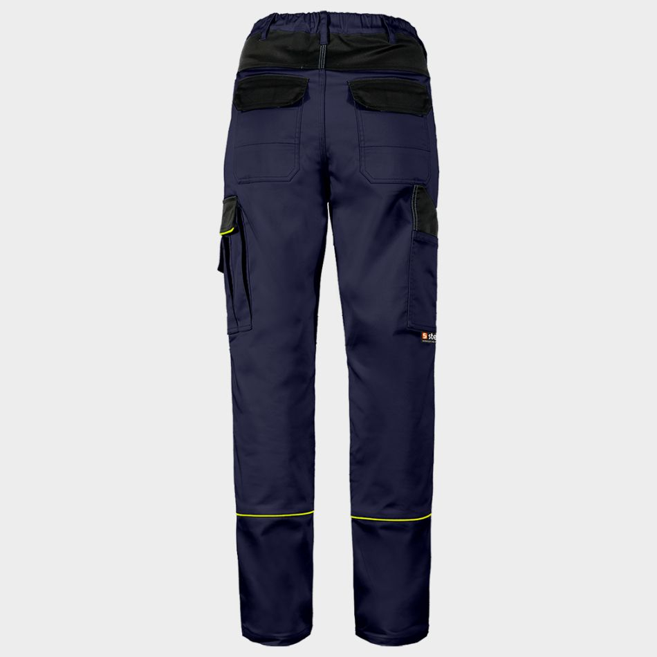 •   Pantaloni de lucru de dama cu talie elastica confortabila si un design atractiv, cu accente contrastante, care imbina stilul si functionalitatea.