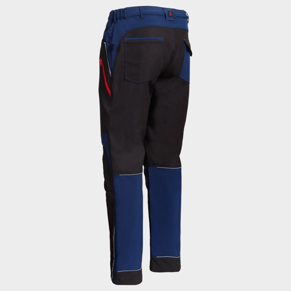 •  Pantaloni de lucru din material softshell elastic, cu buzunare functionale, genunchi intariti si elemente de contrast.