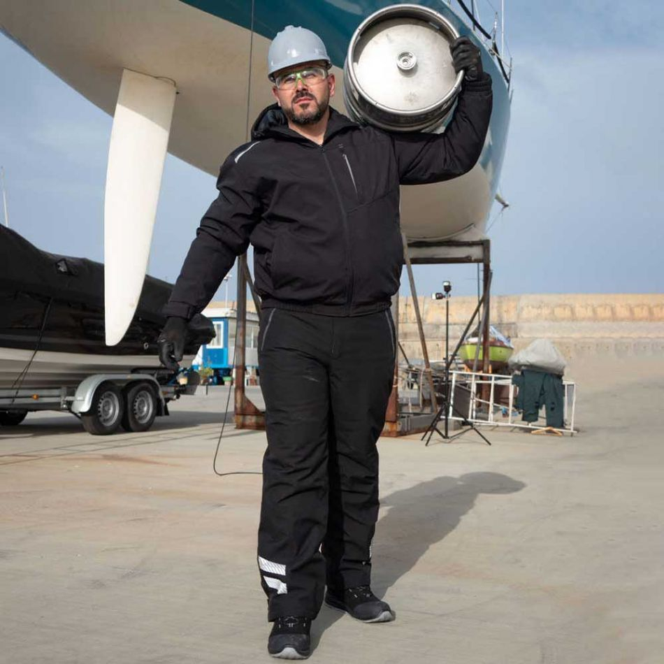 •  Salopeta de iarna, matlasata, din material Softshell - rezistent la vant si apa.