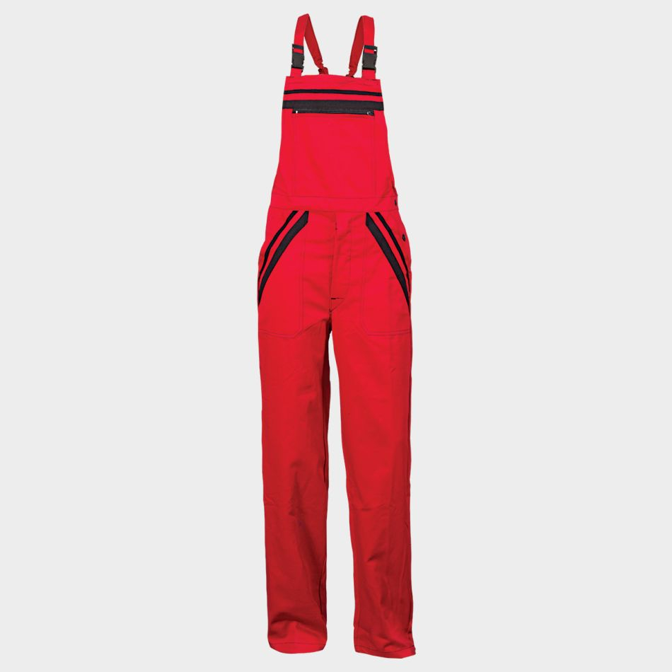 •   Pantaloni de lucru cu pieptar, cu buzunar la piept, fermoar metalic si bretele reglabile.