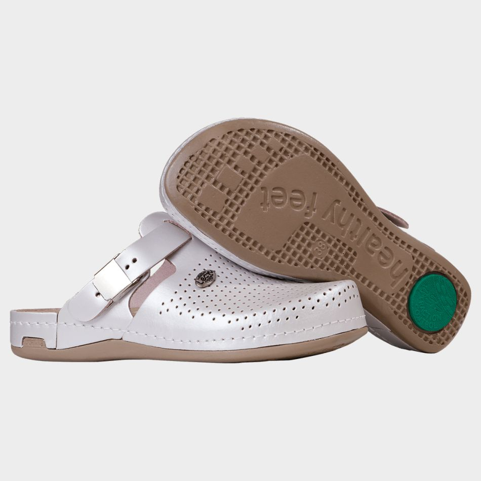 • Saboti confortabili de dama, cu o parte superioara din piele naturala, cu un design perforat si un interior din piele pentru un plus de confort. Brantul din gel moale si calcaiul reglabil asigura o potrivire confortabila si personalizata. Cu o talpa din PU si un brant special proiectat pentru anti-alunecare, acesti saboti ofer confort pe tot parcursul zilei.
