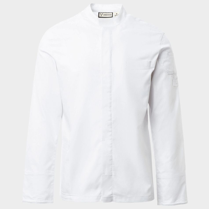 • Tunica de bucatar cu guler drept, realizata dintr-un amestec de twill de bumbac si Lycra® T400® pentru elasticitate si respirabilitate superioare.
