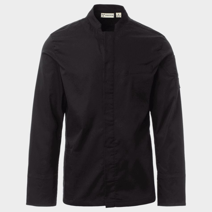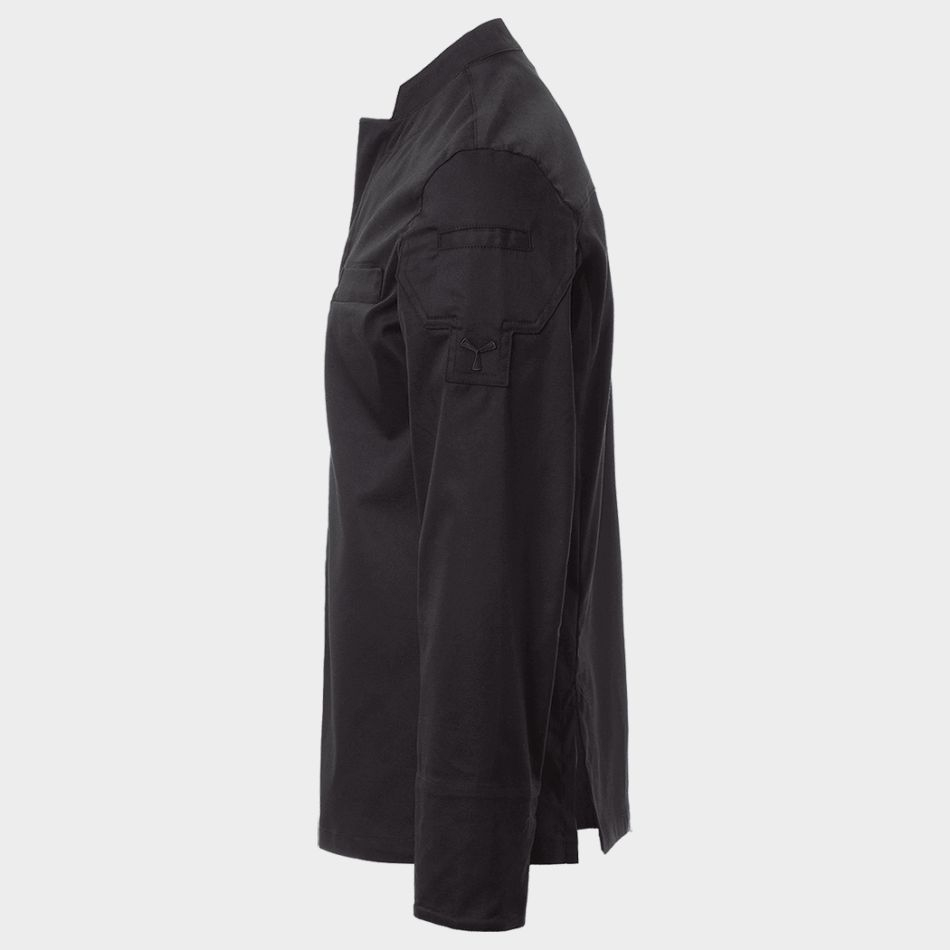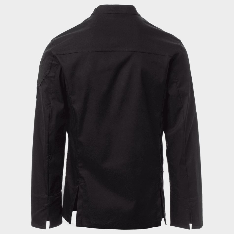 • Tunica de bucatar cu guler drept, realizata dintr-un amestec de twill de bumbac si Lycra® T400® pentru elasticitate si respirabilitate superioare.