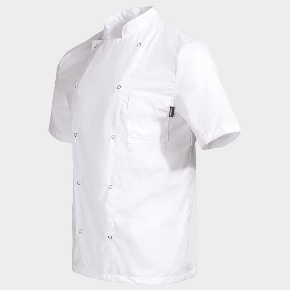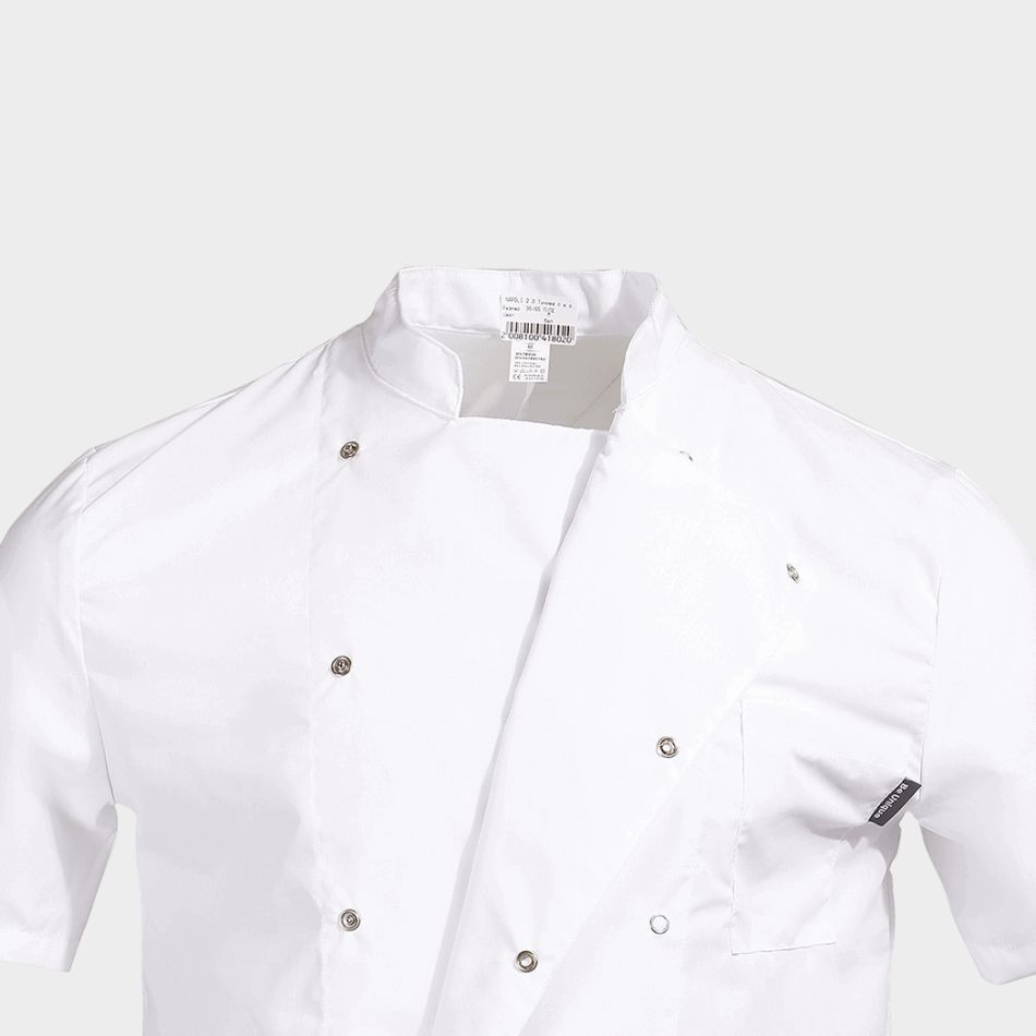 •   Tunica pentru bucatar cu maneca scurta, confectionata dintr-un material respirabil de inalta calitate. Asigura confort si libertate de miscare in timpul orelor lungi de lucru. Inchidere dubla cu capse si buzunare functionale pe maneca. Usor de intretinut si potrivita pentru utilizare intensiva.