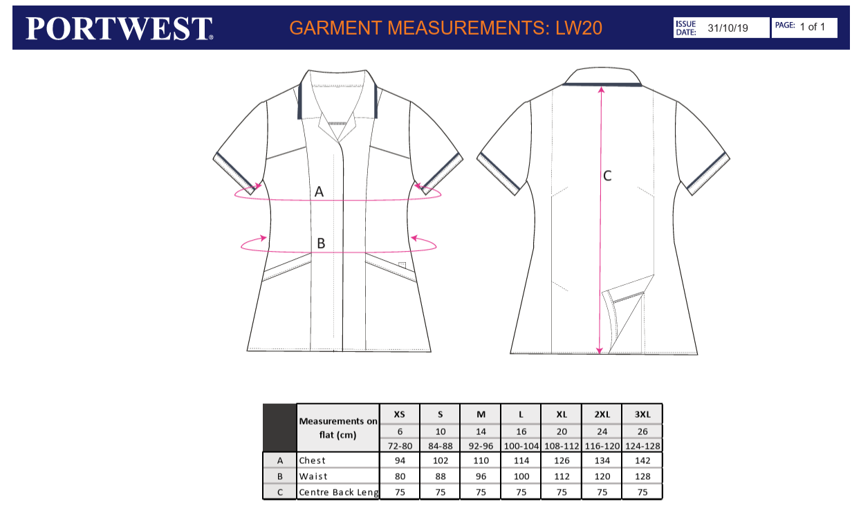 Tunica de lucru cu maneca scurta dama Portwest LW20, 65% poliester, 35% bumbac 190 gr/mp