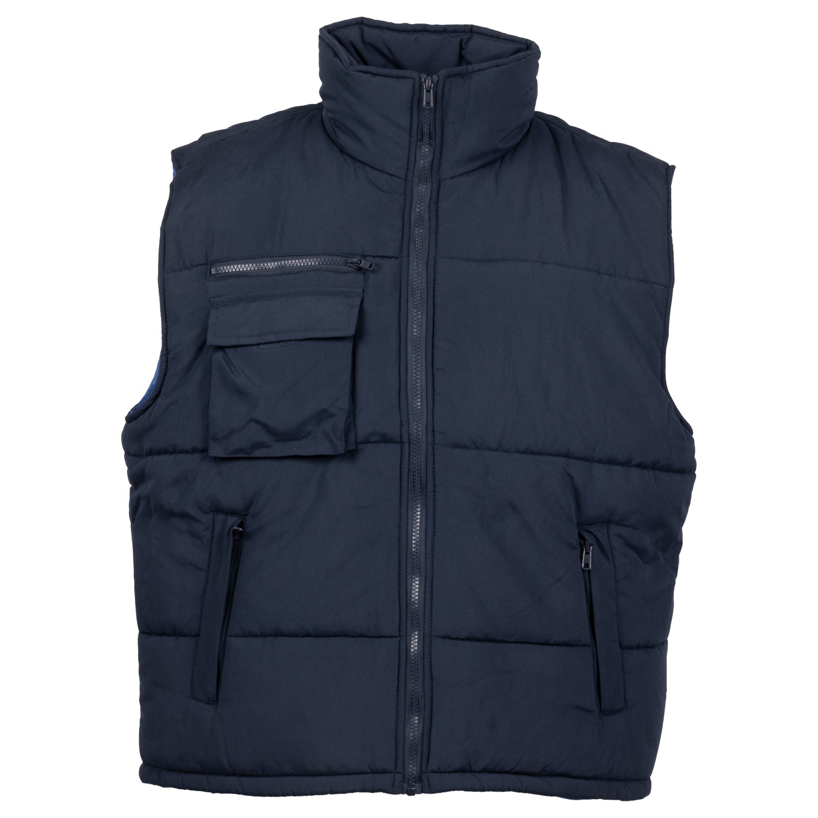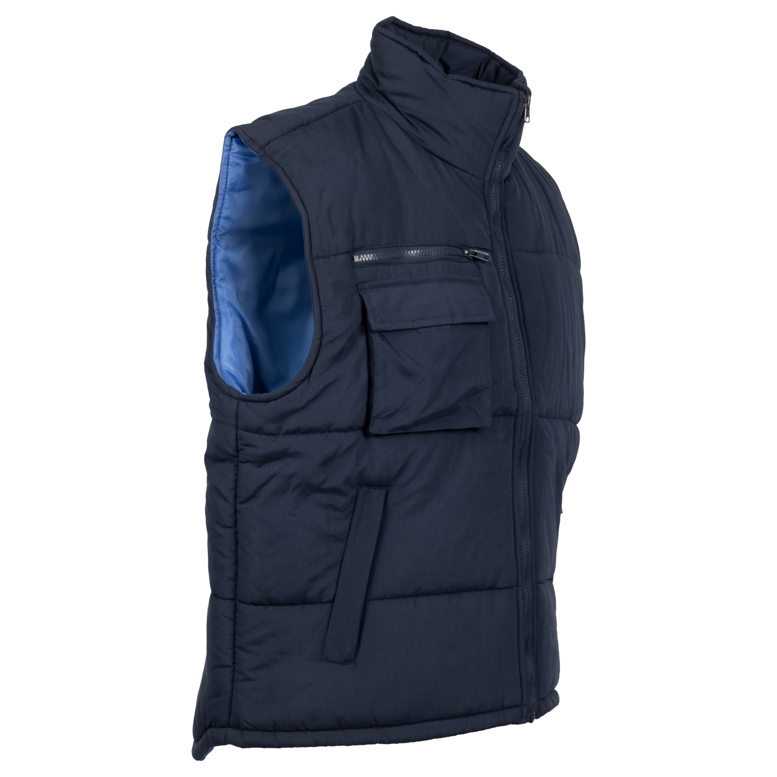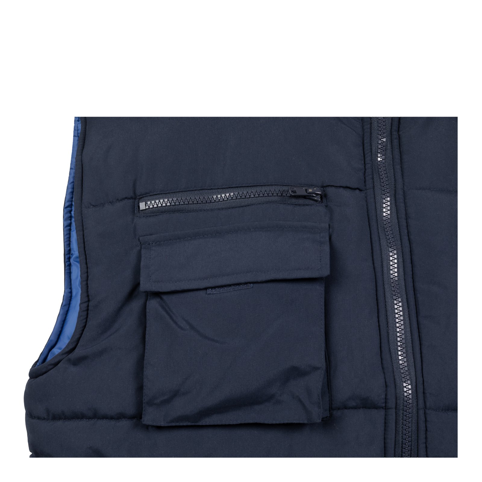 -Vesta vatuita prezinta doua buzunare frontale inchise cu fermoar si acoperite.